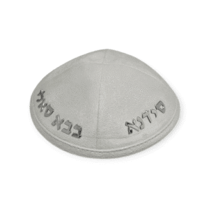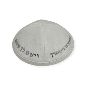 כיפה קטיפה אפורה עם מדבקה יברכך ה’ וישמרך בכסף 4468460
