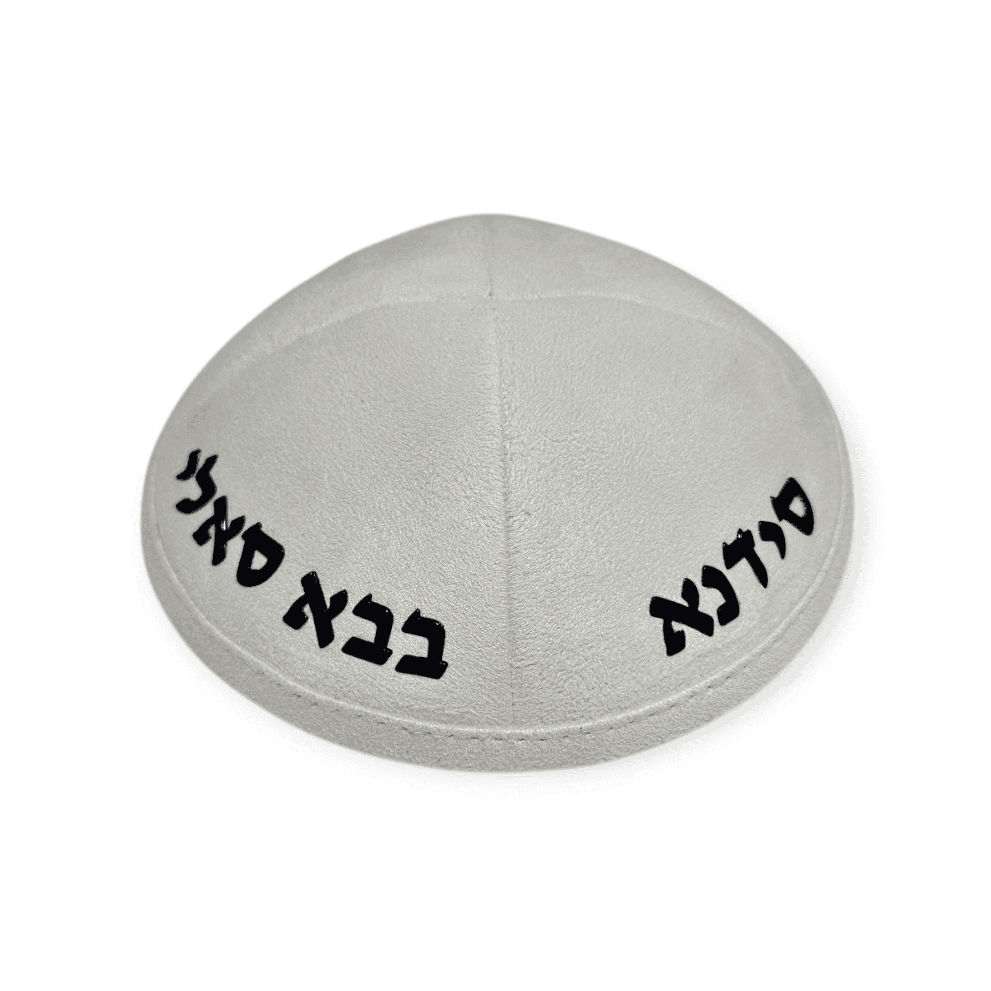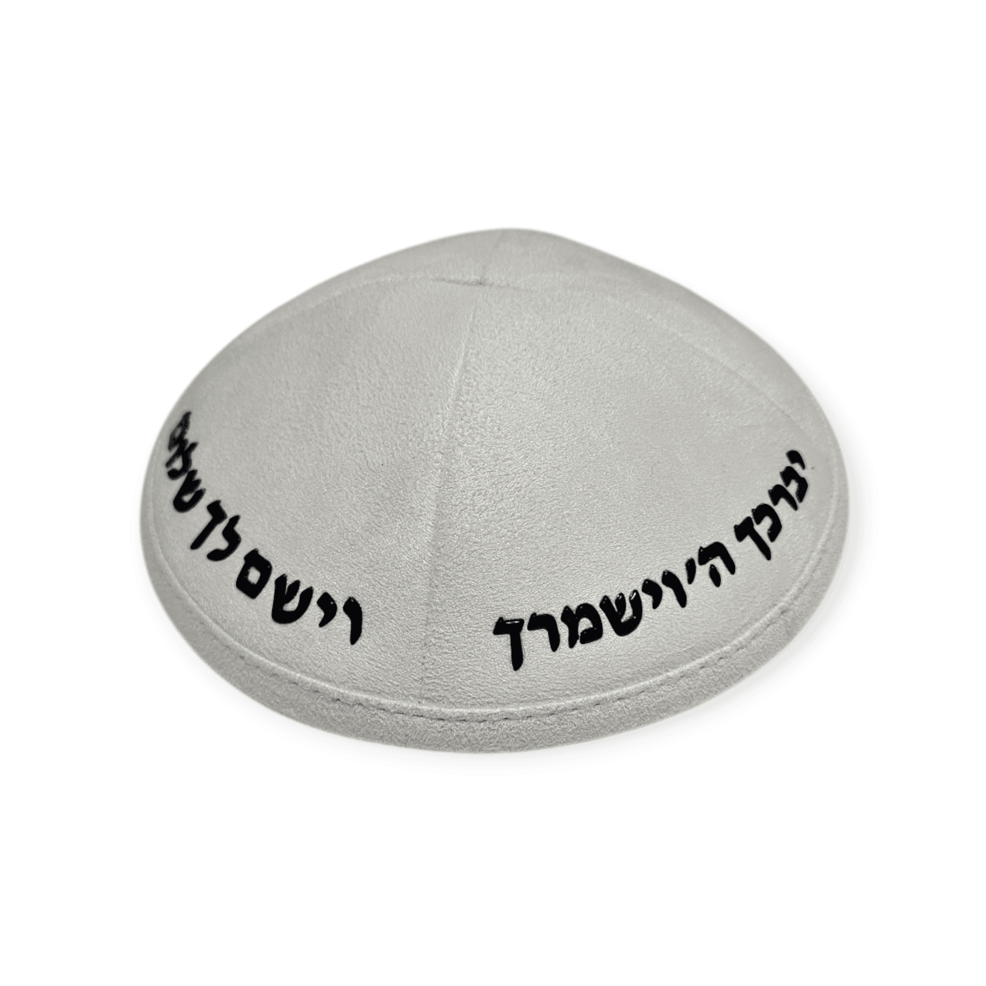 כיפה קטיפה לבנה עם מדבקה יברכך ה’ וישמרך בשחור 4468439