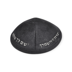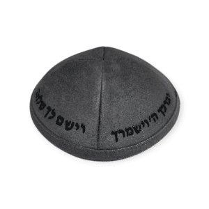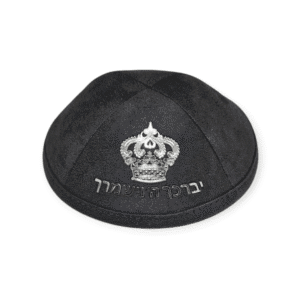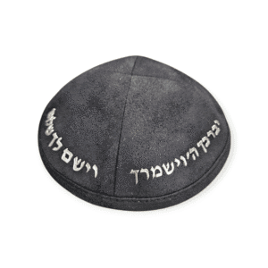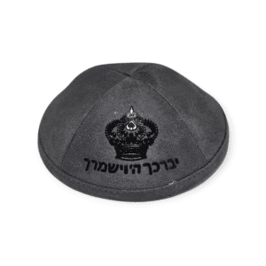 כיפה קטיפה אפורה עם מדבקה יברכך ה’ וישמרך בשחור 4468477
