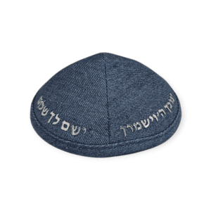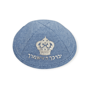 כיפה קטיפה ג’ינס עם מדבקה יברכך ה’ וישמרך בכסף 4468484