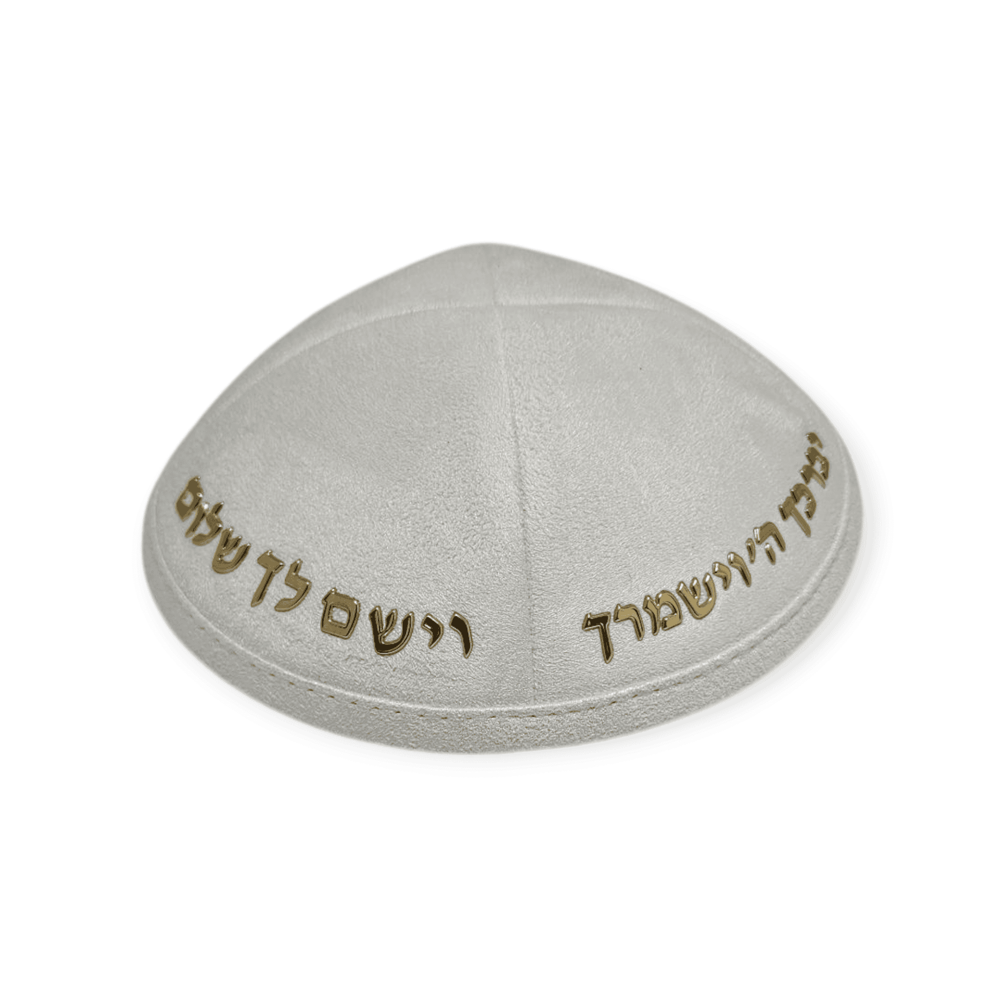 כיפה קטיפה לבנה עם מדבקה יברכך ה’ וישמרך בזהב 4468446
