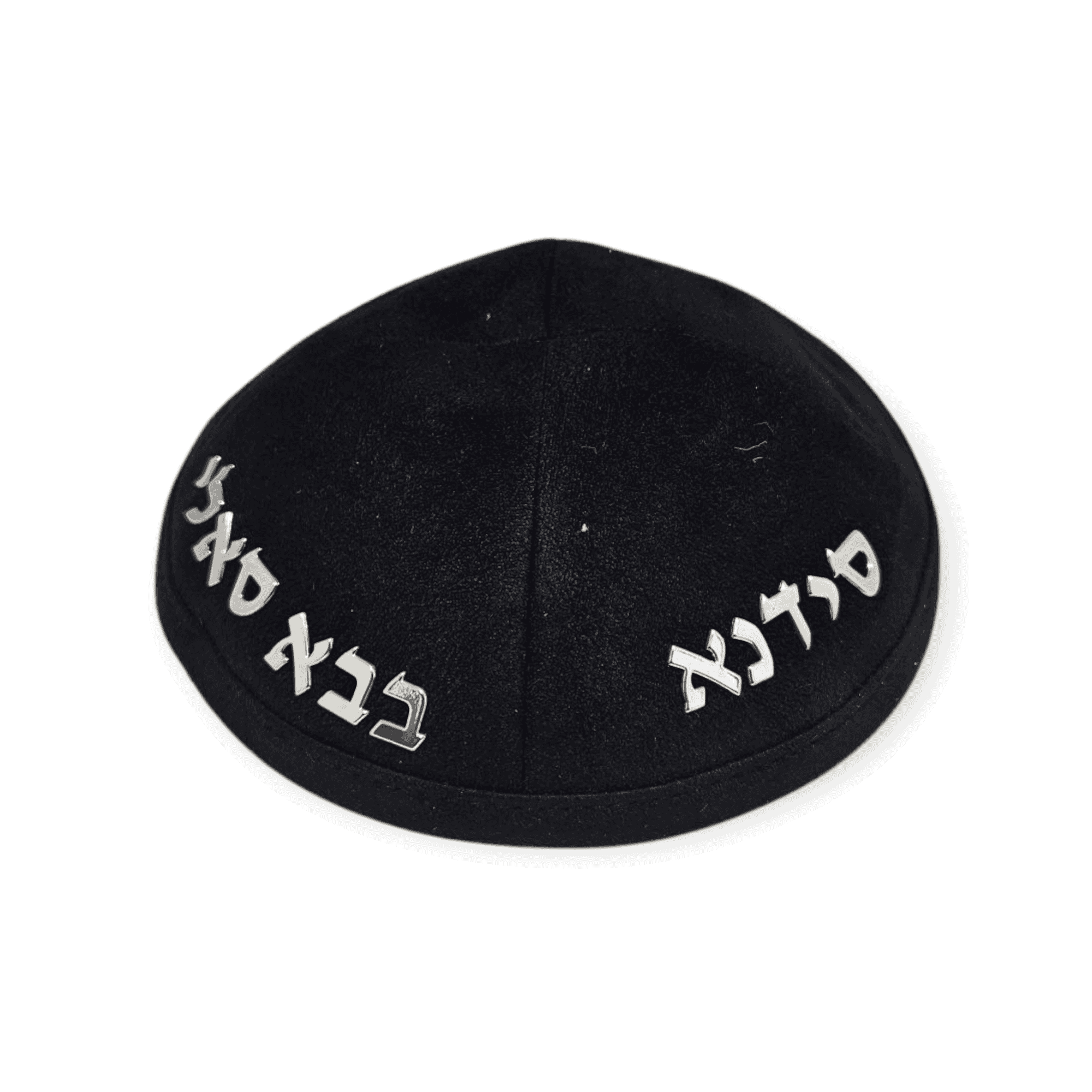 כיפה קטיפה שחורה עם מדבקה בבא סאלי בכסף 4468330