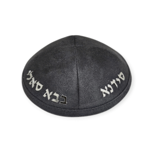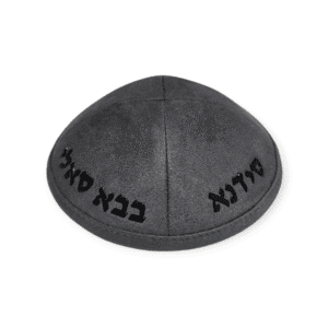 כיפה קטיפה אפורה עם מדבקה בבא סאלי בשחור 4468354