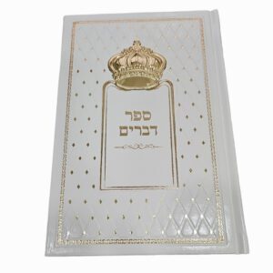 ספר דברים דמוי עור לבן עם כתר זהב 22/15 ס”מ