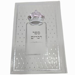 ספר דברים דמוי עור לבן עם כתר כסוף 22/15 ס”מ