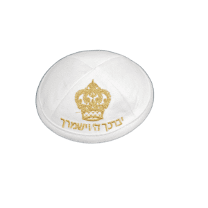 כיפה קטיפה לבנה ילדים עם רקמת כתר בזהב 14 ס”מ