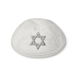 כיפה קטיפה לבנה ילדים עם רקמת מגן דוד בכסף 14 ס”מ