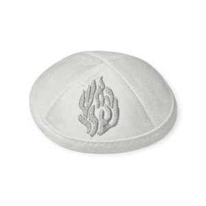 כיפה קטיפה לבנה ילדים עם רקמת האש שלי בכסף 14 ס”מ