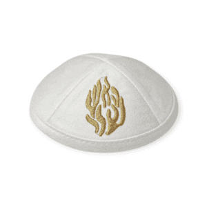 כיפה קטיפה לבנה ילדים עם רקמת האש שלי בזהב 14 ס”מ
