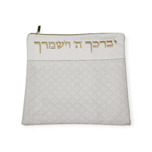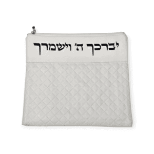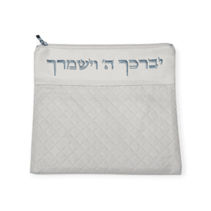 טלית ילדים תשבץ רקמה יברכך פסים כסופים 130/70 ס”מ
