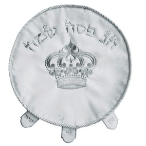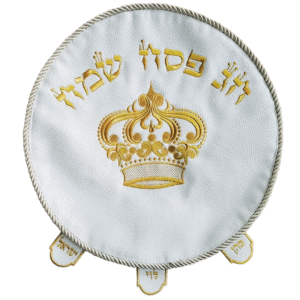 כיסוי פסח דמוי עור דגם כתר לבן כסף 44 ס”מ