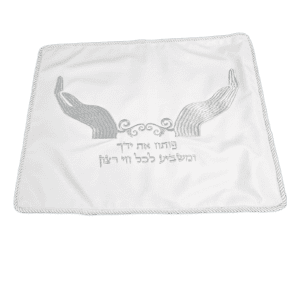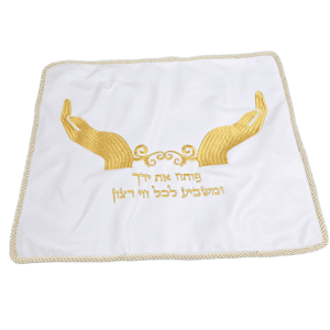 כיסוי חלה דמוי עור דגם ידיים לבן כסף 56/46 ס”מ מקט
