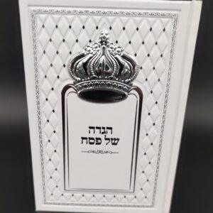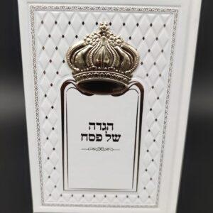 הגדה של פסח דמוי עור לבן כתר כסף 17/12 ס”מ